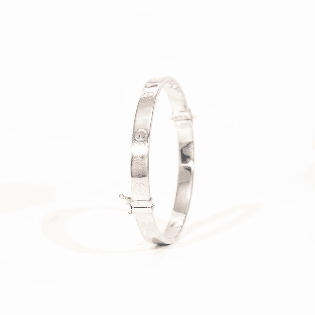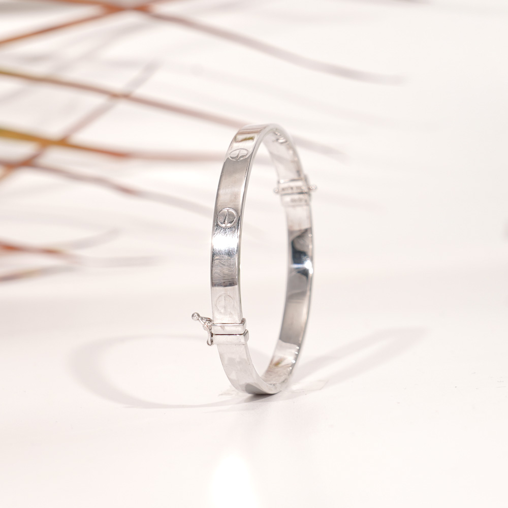 Crafted in luxurious 18K white gold, this elegant bracelet showcases a sleek and minimalist design that exudes timeless sophistication. The smooth, polished finish reflects light beautifully, while the subtle detailing adds a refined touch of charm.