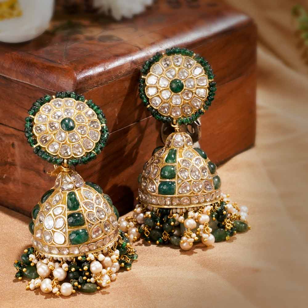 Ask For PriceAn Emerald Garden: The Regal Splendor of 22 Karat Polki Jhumkas