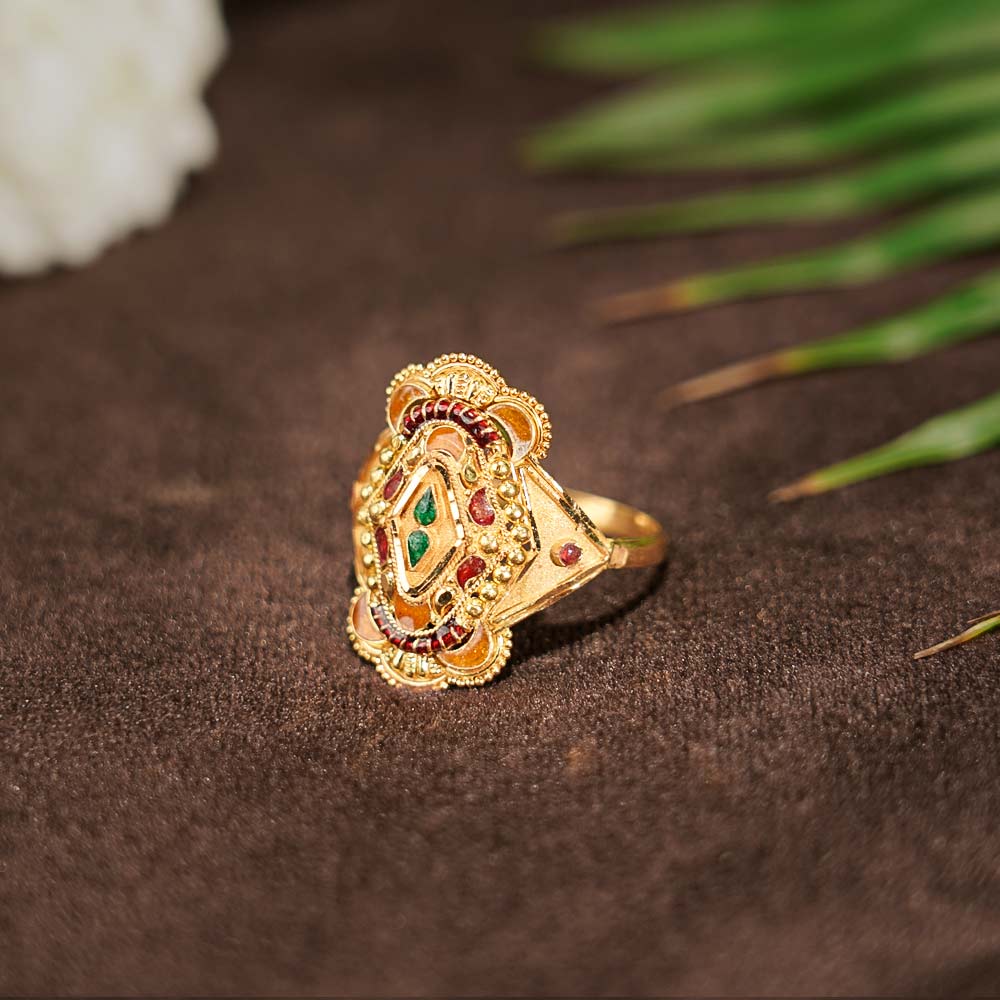 ₹31,28222 KARAT GOLD RING | TRADITIONAOL RING | MEENAKARI RING | CRAFTMANSHIP RING