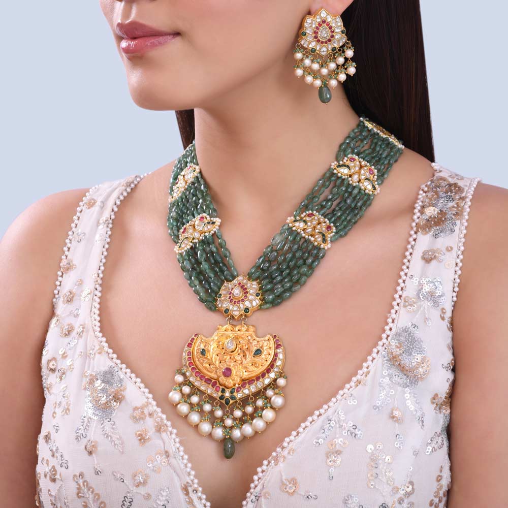 | Gemstones | : | EMERALD BEADS RUBY PEARLS |