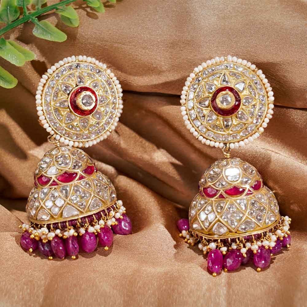 22 KAREAT GOLD JHUMKA | RUBY & PEARL DIAMOND JHUMKA | LONG JHUMKA | BRIDAL JHUMKA | UNCUT DIAMOND JHUMKA | TRADITIONAL EARRING JHUMKA | HANDCRAFTED EARRING JHUMKA