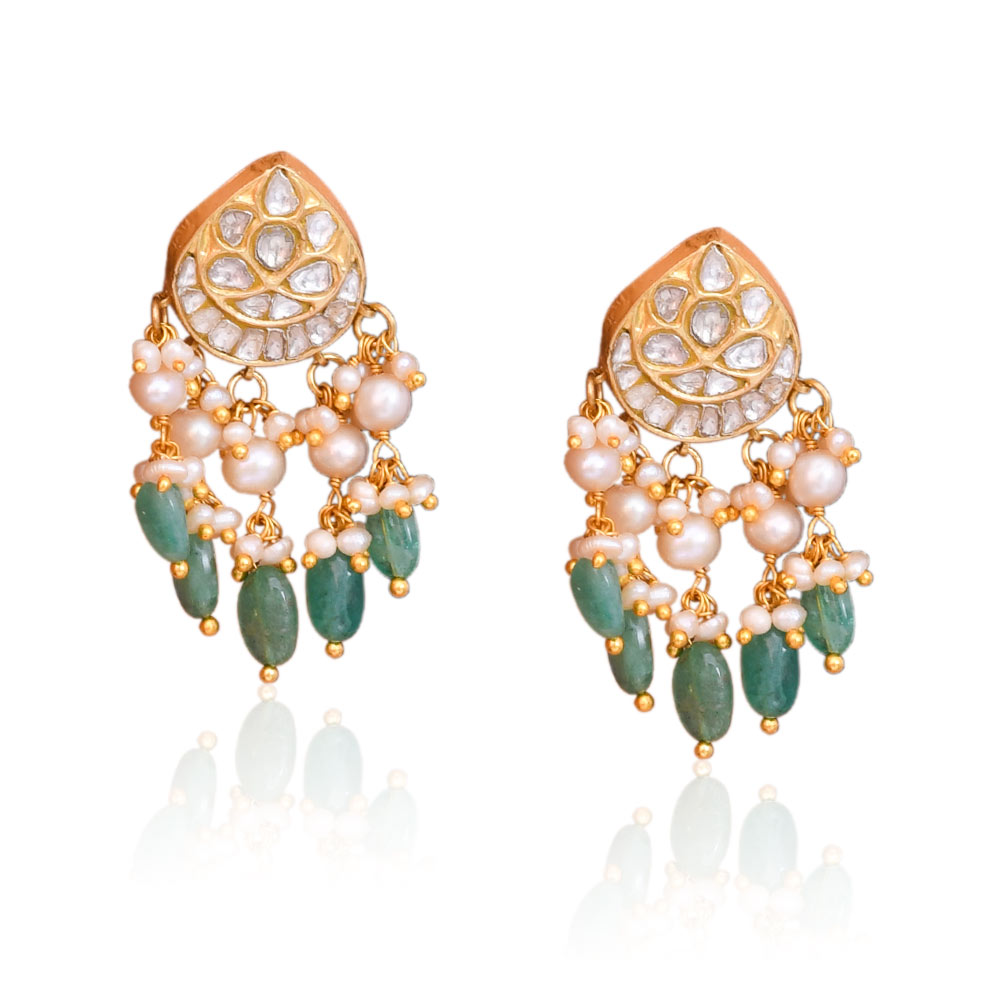 22 KARAT GOLD POLKI DIAMOND EARRING | POLKI DIAMOND EARRING | PEARL GOLD EARRING | UNCUT DIAMOND EARRING | EMERALD BEAD EARRING