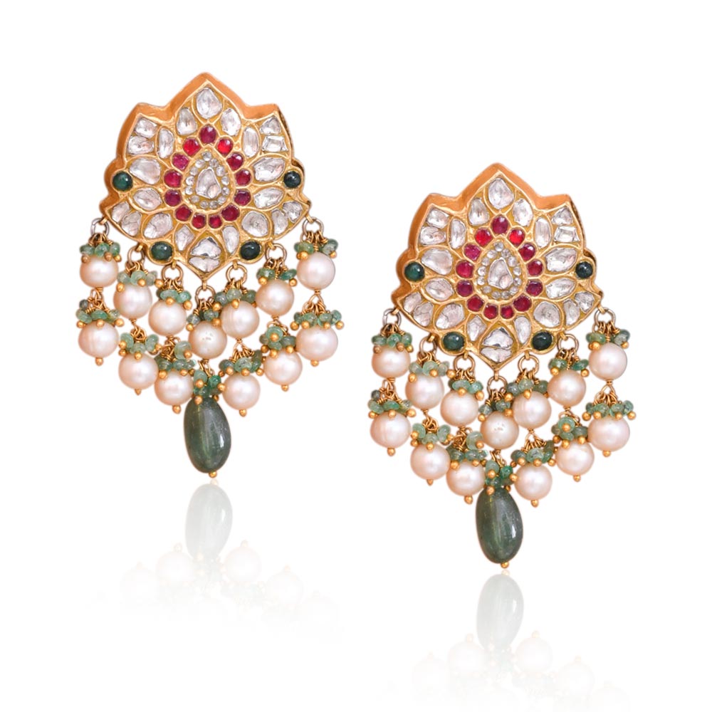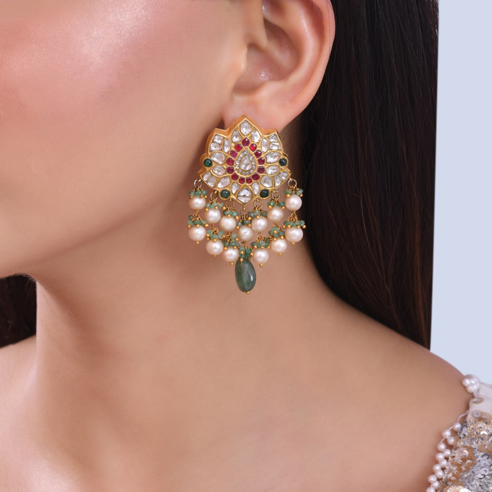 Exquisite Polki & Pearl Drop Earrings
