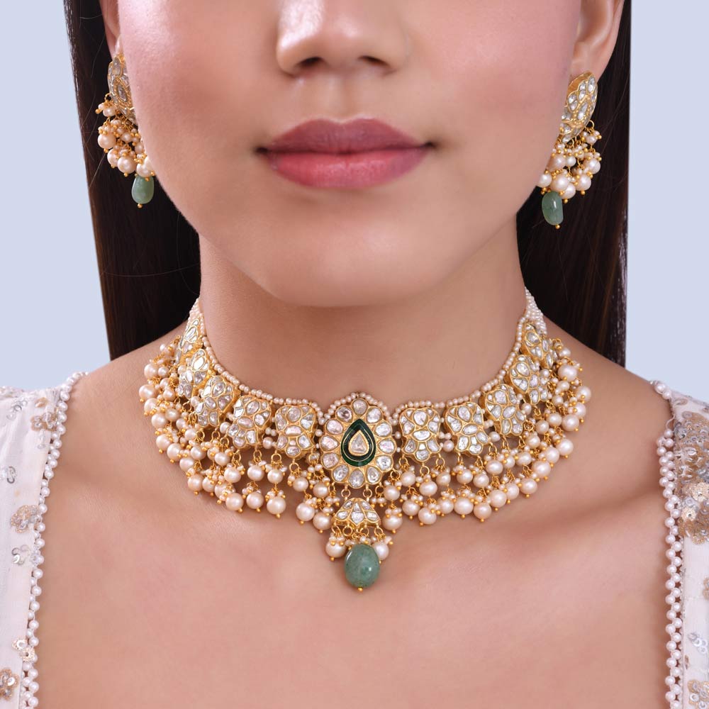 Polki diamond choker | emerald and pearl necklace | Kundan gold choker | Indian wedding choker | Bridal choker | Uncut diamond choker | luxury choker set | traditional bridal accessory