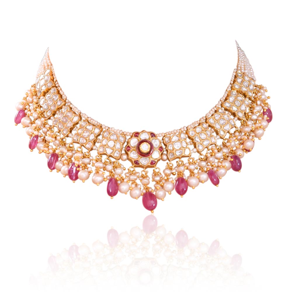 Kun dan Chokar Necklace | Bridal Necklace | 22 karaat gold Diamond Necklace | Polki Diamond necklace | Tanzenite Stone Necklace | Rose quartz Necklace | Traditional Indian Necklace
